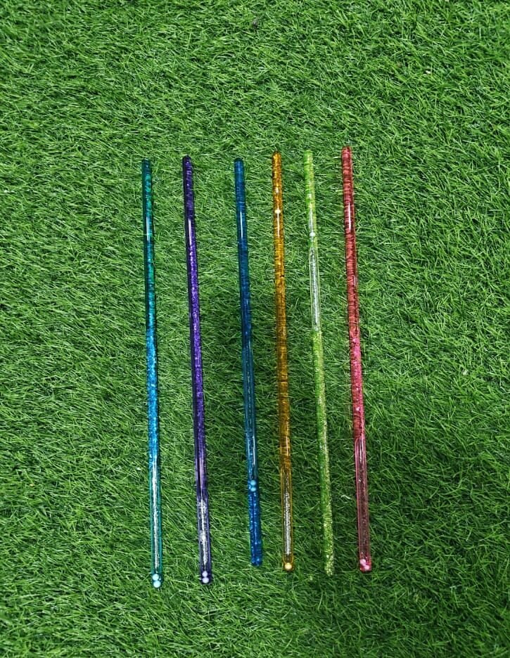 - Bright glitter-filled sensory wands